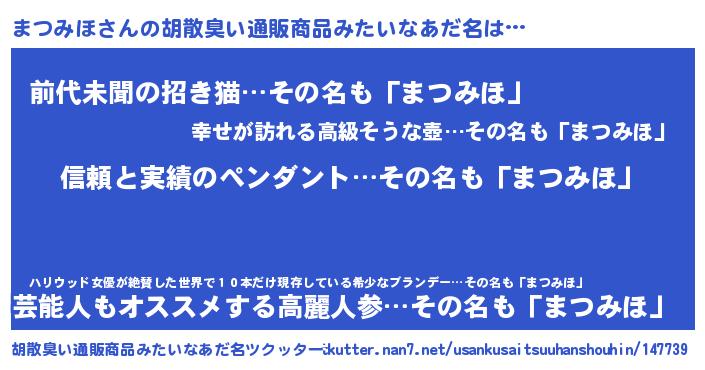 | ヘコむあだ名 | 『まつぷりん』『まつみほ(笑)』 |