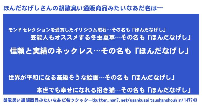 ほんだなげしさんの胡散臭い通販商品みたいなあだ名をツクッター!