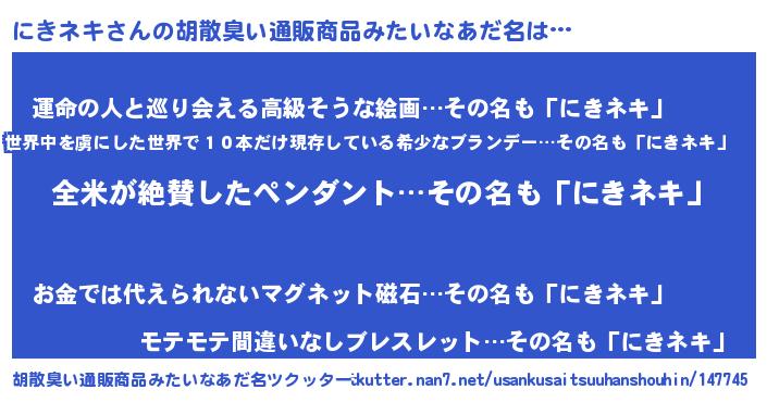 | 萌えアニメ | 主人公(にきネキ)のあだ名『 にきにききゅん』 |