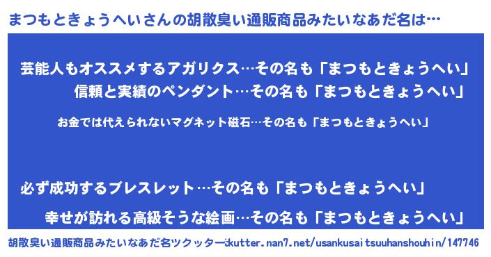 | 意味不明あだ名 | 『眠気覚ましガムまつもときょうへい味』 |