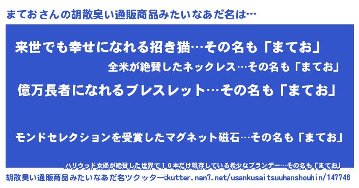 | 意味不明あだ名 | 『ペロリンまてお』『永久保存まてお』 |
