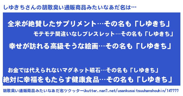 | 意味不明あだ名 | 『しゆきちフォーエバー』 |
