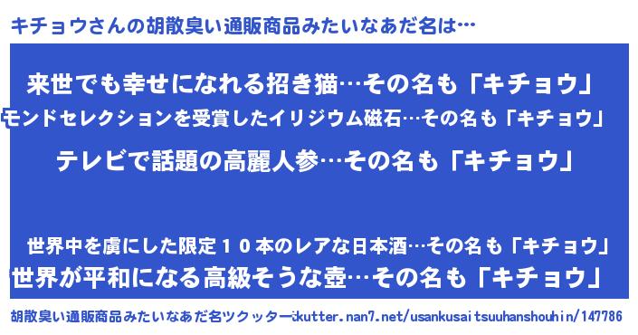 | ヘコむあだ名 | 『キチョウ(笑)』『なまこ酢』 |