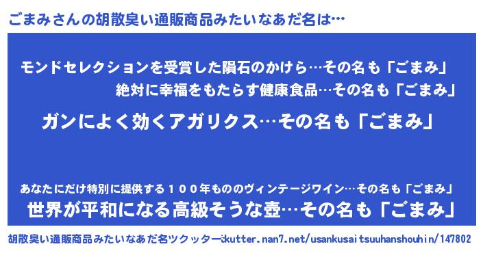 | ヒーロー風カッコイイあだ名 | 『ウルトラ戦士ゴマミ』『ネオゴマミ』 |