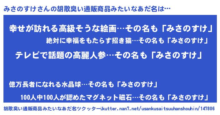 | 肩書あだ名 | 『みさのすけ閣下』『みさのすけ総理大臣』 |