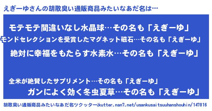 | 意味不明あだ名 | 『永久保存えぎーゆ』『ペロリンえぎーゆ』 |