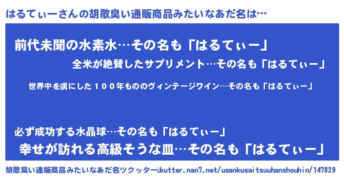 | 意味不明あだ名 | 『住所不定無職はるてぃー(2歳)』 |