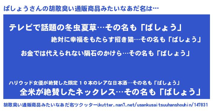 | ヘコむあだ名 | 『ばしぷりん』『ばしょう(苦笑)』 |