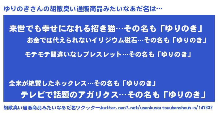 | ヘコむあだ名 | 『ゆりふぇ~』『ゆりのき(小並感)』 |