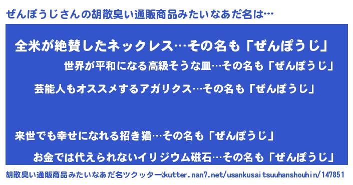 | 意味不明あだ名 | 『自称ぜんぽうじ』『永久保存ぜんぽうじ』 |