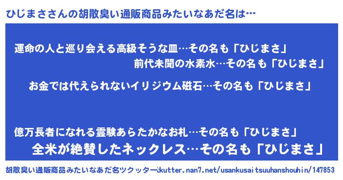 | ヒーロー風カッコイイあだ名 | 『愛の使者ひじまさ』『炎刃騎士ヒジ』 |