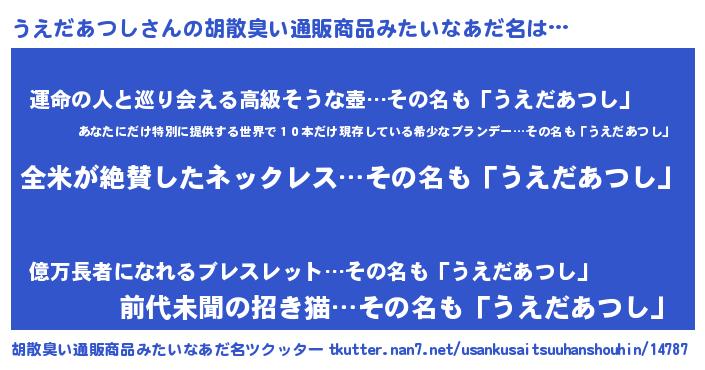 | ヘコむあだ名 | 『うえっぺ』『なまこ酢』『うえもー』 |
