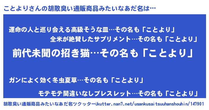 | ヒーロー風カッコイイあだ名 | 『ネオコトヨリ』『ウルトラことよりマン』 |