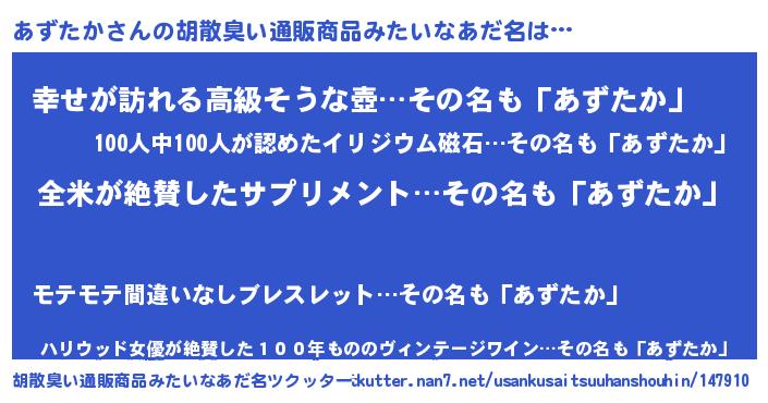 | ヘコむあだ名 | 『あずお』『牛乳』『あずにゅー』 |