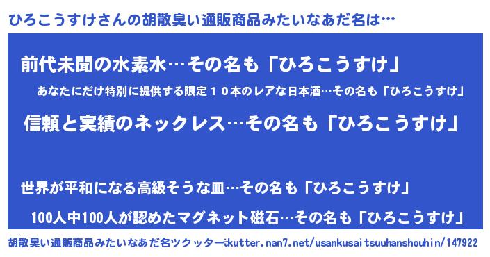 | ヒーロー風カッコイイあだ名 | 『暗黒騎士ヒロ』『ネオヒロコウスケ』 |