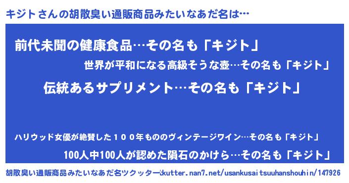 | 意味不明あだ名 | 『とにかく怪しいキジト』 |