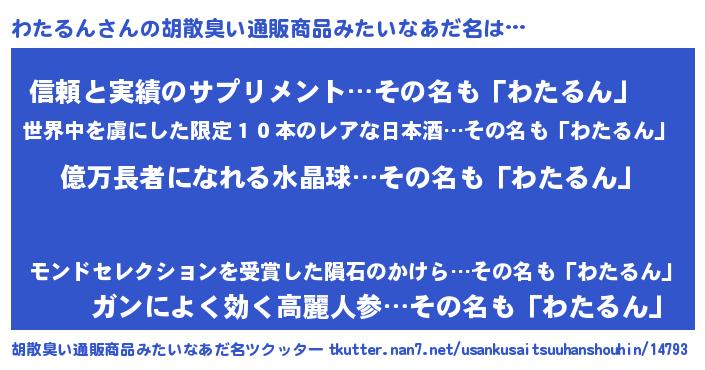 | ヒーロー風カッコイイあだ名 | 『スーパーワタルン』『魔戒騎士ワタ』 |
