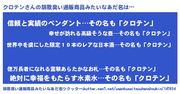| ヘコむあだ名 | 『クロ太郎』『クロテン(震え声)』 |