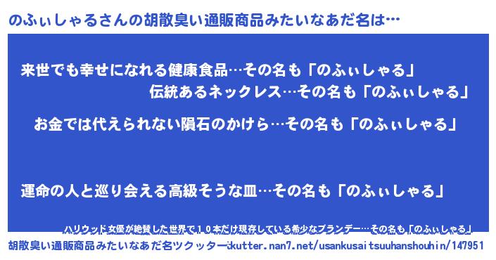 | ヘコむあだ名 | 『のふぃしゃる(遠い目)』『のふっ子』 |