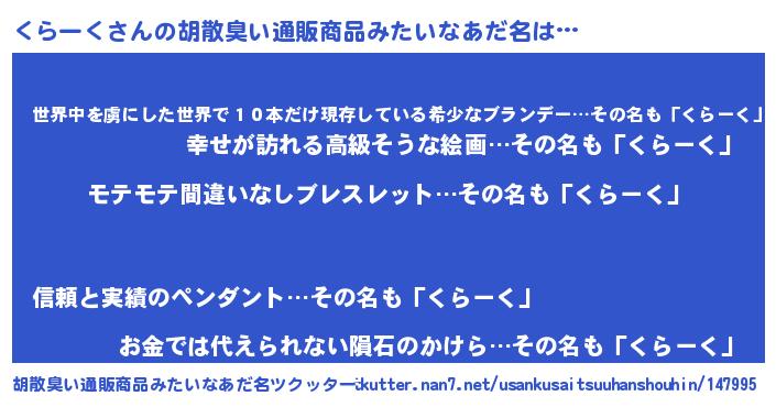 | 男性向けラノベタイトル風あだ名 | 『くらーくの憂鬱』 |