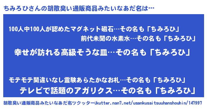 | 肩書あだ名 | 『ちみろひ上級大将』『ちみろひ船長』 |