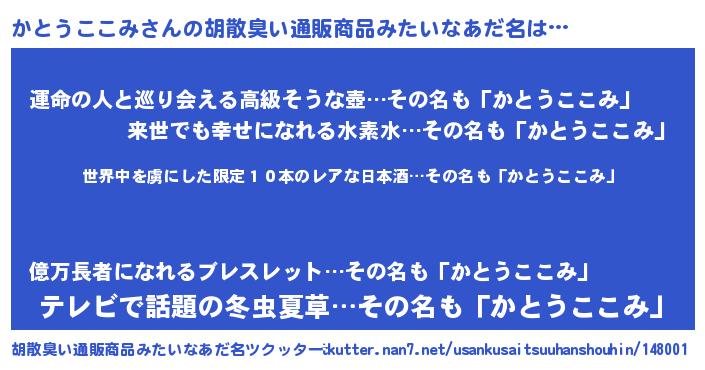 ヘコむあだ名 | 『なまこ酢』『かとうここみ(遠い目)』 |