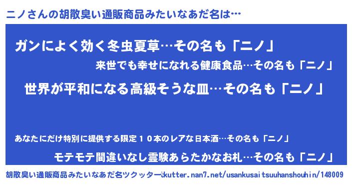 | ポケモン風あだ名 | 『ニノキング』『ニノダネ』 |