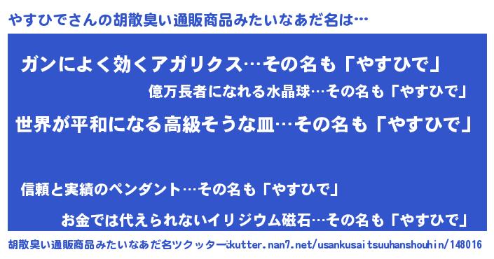 | ヒーロー風カッコイイあだ名 | 『ウルトラやすひでマン』『幻影騎士ヤス』 |
