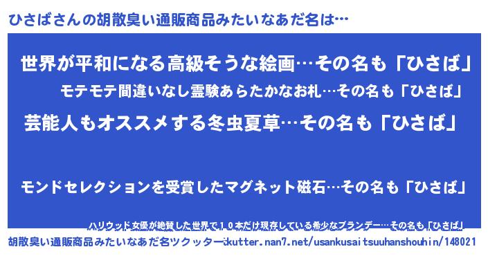| ヒーロー風カッコイイあだ名 | 『最強戦士ヒサバ』『ウルトラひさばマン』 |