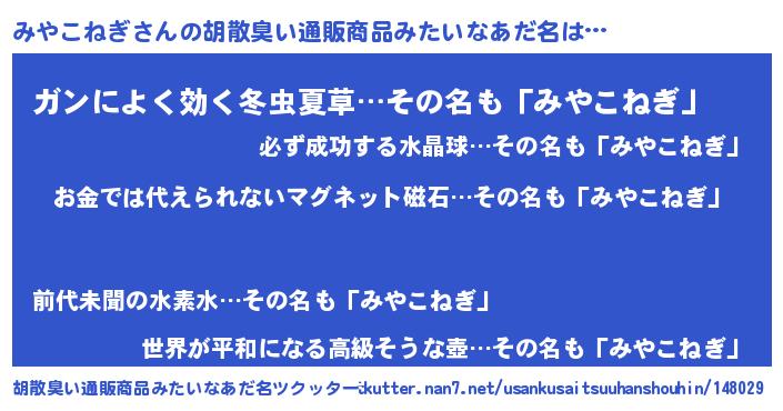 | ヒーロー風カッコイイあだ名 | 『愛の使者みやこねぎ』『ネオミヤコネギ』 |