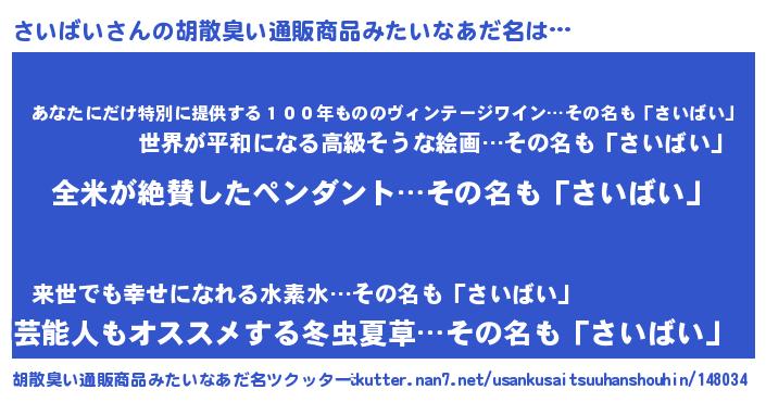 | 意味不明あだ名 | 『とにかく怪しいさいばい』 |