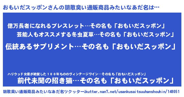 | 意味不明あだ名 | 『とにかく怪しいおもいだスッポン』 |