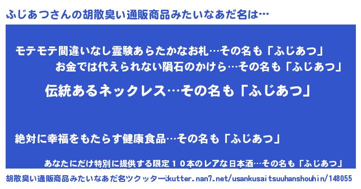| 意味不明あだ名 | 『とにかく怪しいふじあつ』 |