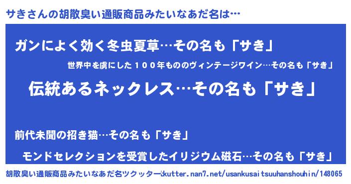 | 意味不明あだ名 | 『とにかく怪しいサき』『自称サき』 |