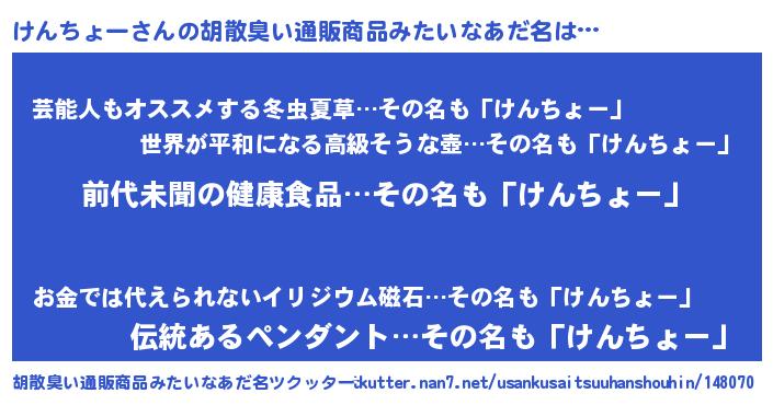 | 意味不明あだ名 | 『永久保存けんちょー』『自称けんちょー』 |