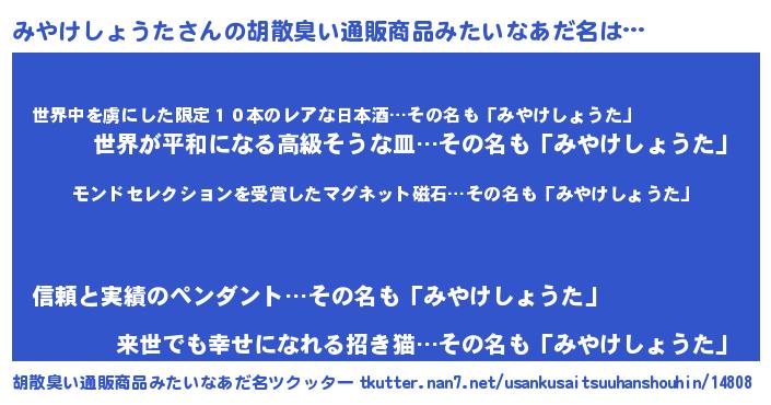 | ポケモン風あだ名 | 『ミヤキング』『ミックウザ』 |