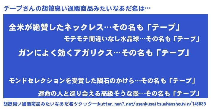 | 女子向けラノベタイトル風あだ名 | 『テープなんてお断りですっ。』 |