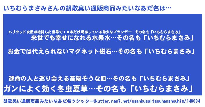 | 意味不明あだ名 | 『眠気覚ましガムいちむらまさみ味』 |