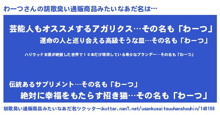 | 欧米人風あだ名 | 『ダレノガレわーつ』『わーつクリステル』 |