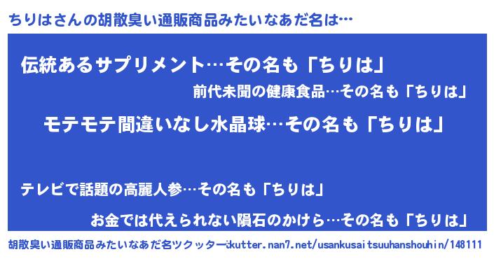| 男性向けラノベタイトル風あだ名 | 『ちりはの憂鬱』『魔法科高校のちりは』 |