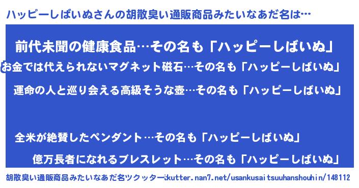 | 意味不明あだ名 | 『ハッピーしばいぬフォーエバー』 |