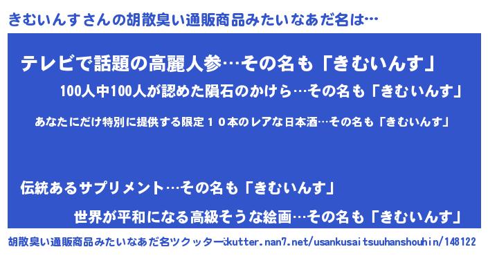 | 意味不明あだ名 | 『住所不定無職きむいんす(59歳)』 |