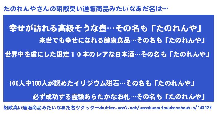 | 意味不明あだ名 | 『住所不定無職たのれんや(56歳)』 |