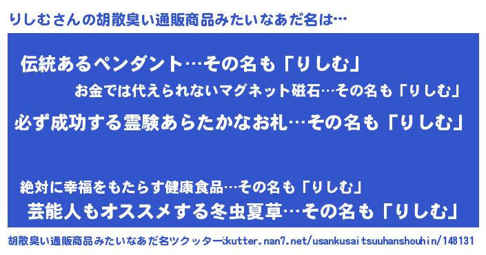 | 男性向けラノベタイトル風あだ名 | 『りしむの憂鬱』『魔法科高校のりしむ』 |