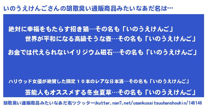 | ヘコむあだ名 | 『いのうえけんご(笑)』『牛乳』 |