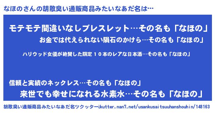 | 意味不明あだ名 | 『住所不定無職なほの(53歳)』 |