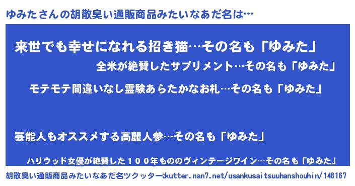 | ヘコむあだ名 | 『ゆみもー』『ゆみた(小並感)』 |