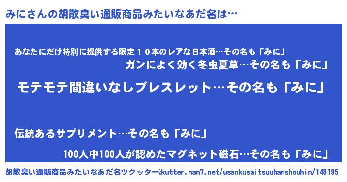 | 欧米人風あだ名 | 『マイケルみに』『ダレノガレみに』 |