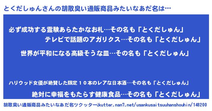 | 恥ずかしいあだ名 | 『とくっちょ』『プリティーとくだしゅん』 |