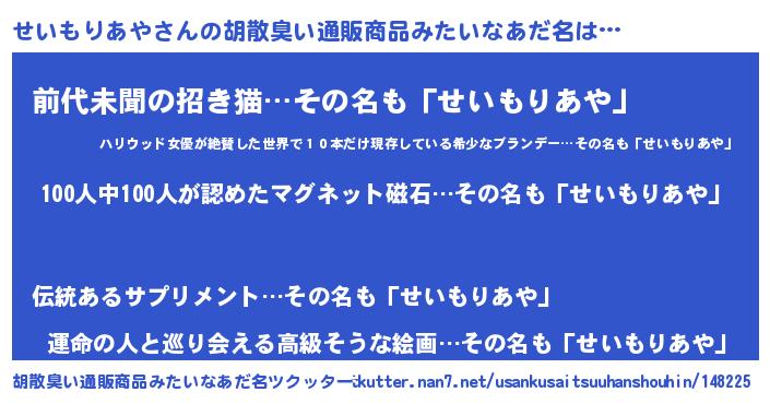 | 肩書あだ名 | 『せいもりあや船長』『せいもりあや大佐』 |